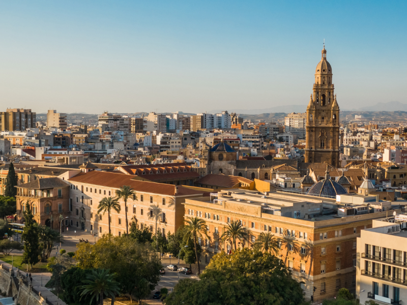 Esmorzar i sortida en direcció a Águilas. Actualment, Águilas conserva la seva tradició marinera i la seva profunda vocació de destinació turística. Cal destacar el seu Ajuntament, un edifici del segle XIX d’estil neomudèjar, situat a la Plaça d’Espanya, espai que compta amb jardins ancestrals i una antiga font presidida per un cigne, més conegut com “la Pava de la Balsa”. Circumden la plaça alguns edificis modernistes, així com l’església de Sant Josep del segle XIX, que guarda la imatge de la Verge dels Dolors, patrona de la ciutat. El nucli antic continua mantenint l’ambient dels barris mariners, bolcats a la pesca i està coronat pel castellfortalesa de San Juan de Águilas. Aquesta torre-fortalesa es va construir al voltant de 1579 amb fins defensius, posteriorment sent reconstruïda al segle XVIII. Al passeig de Parra s’alça el Monument al Ferrocarril, un exemple de la importància que aquest mitjà de locomoció va tenir per a la població. Dinar. Aprofitarem la tarda per conèixer la ciutat de Múrcia, terra fronterera i de pas entre la meseta i les terres andaluses. Alberga